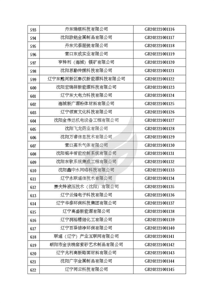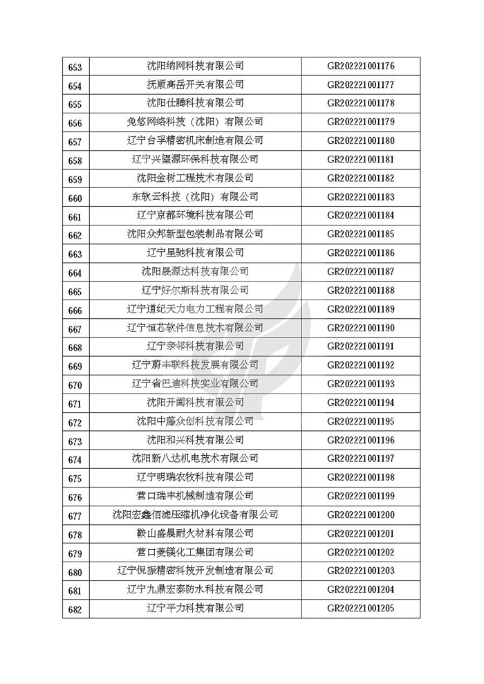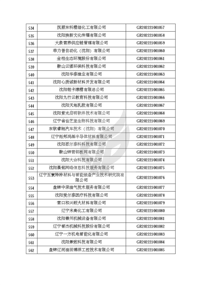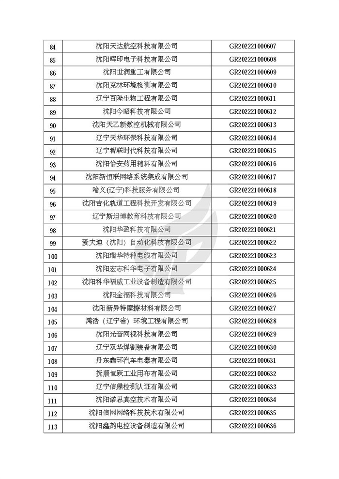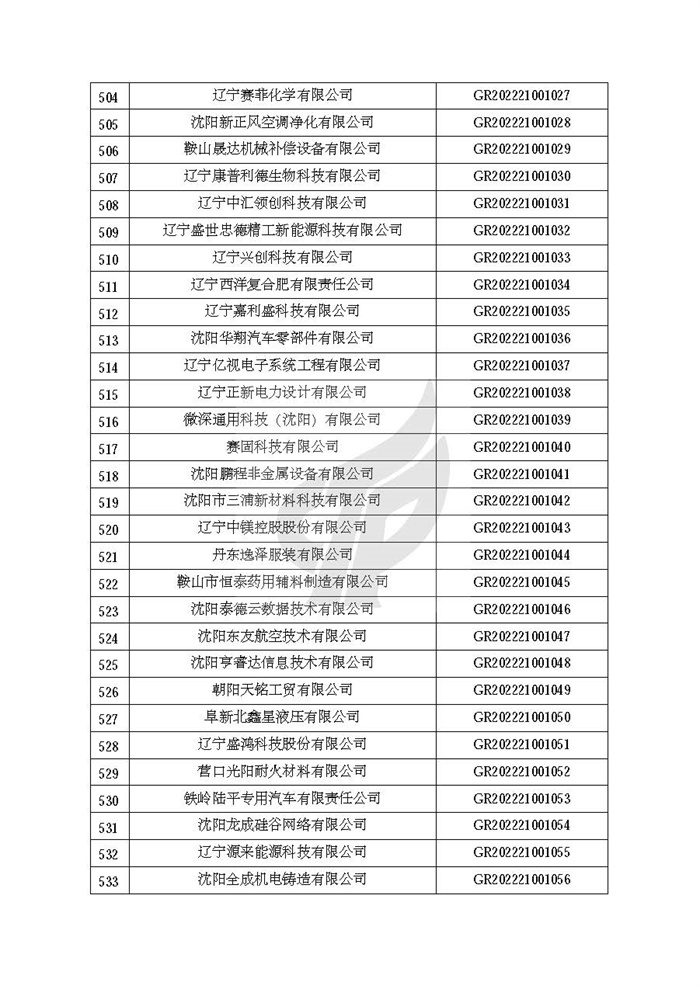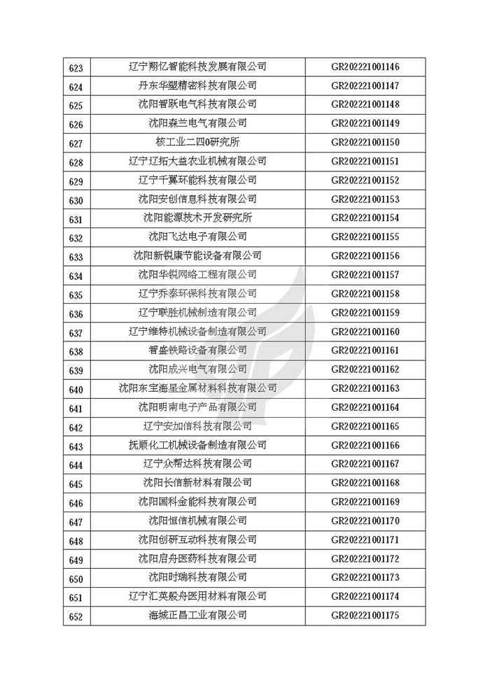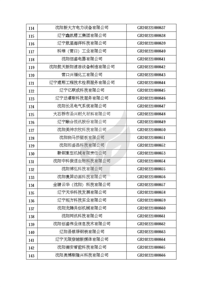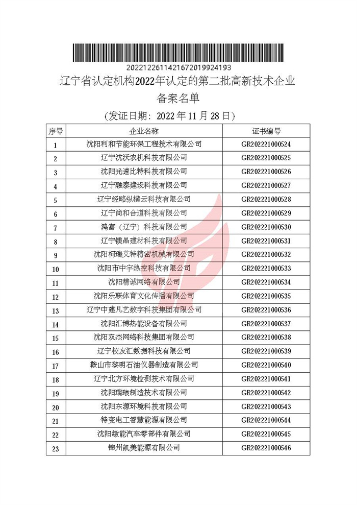 关于对辽宁省认定机构2022年认定的第二批高新技术企业进行备案的公告