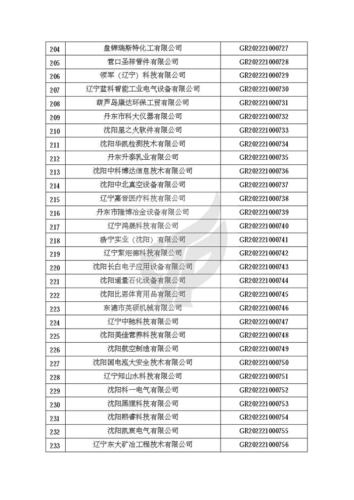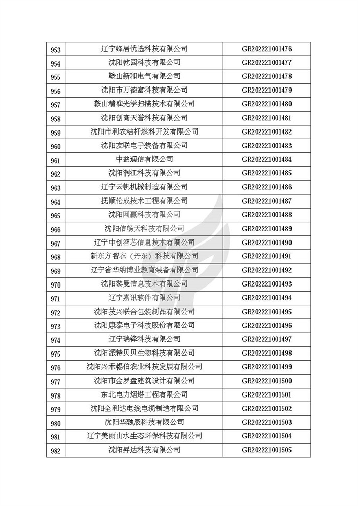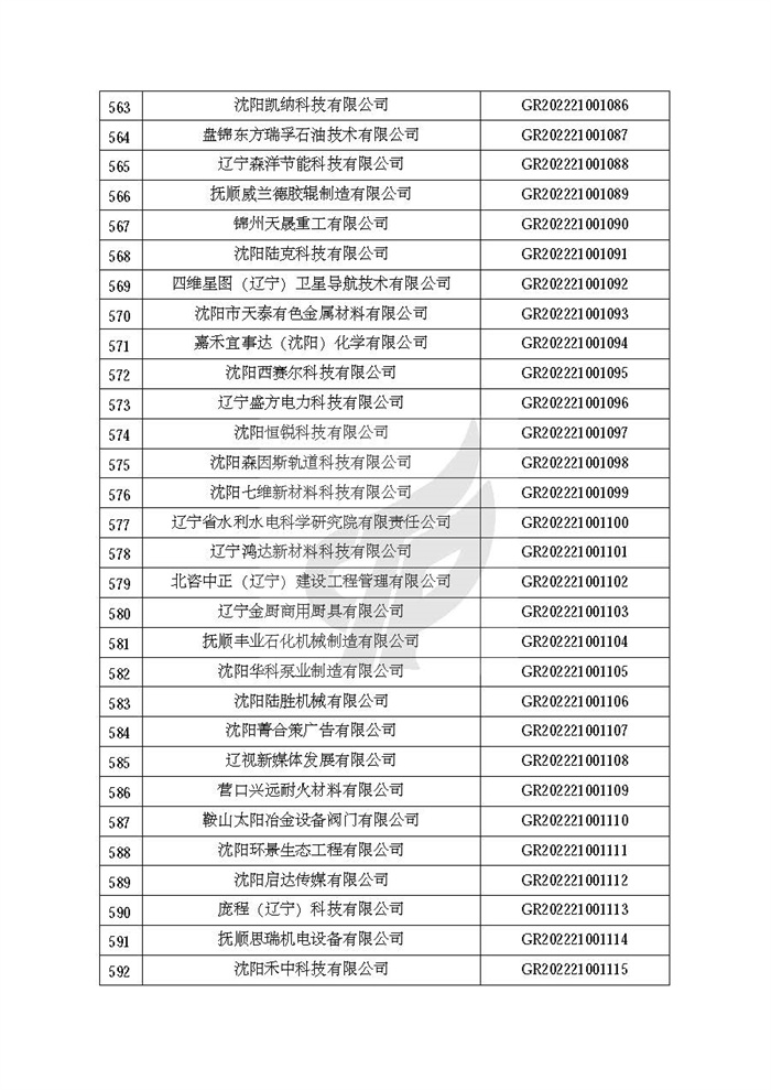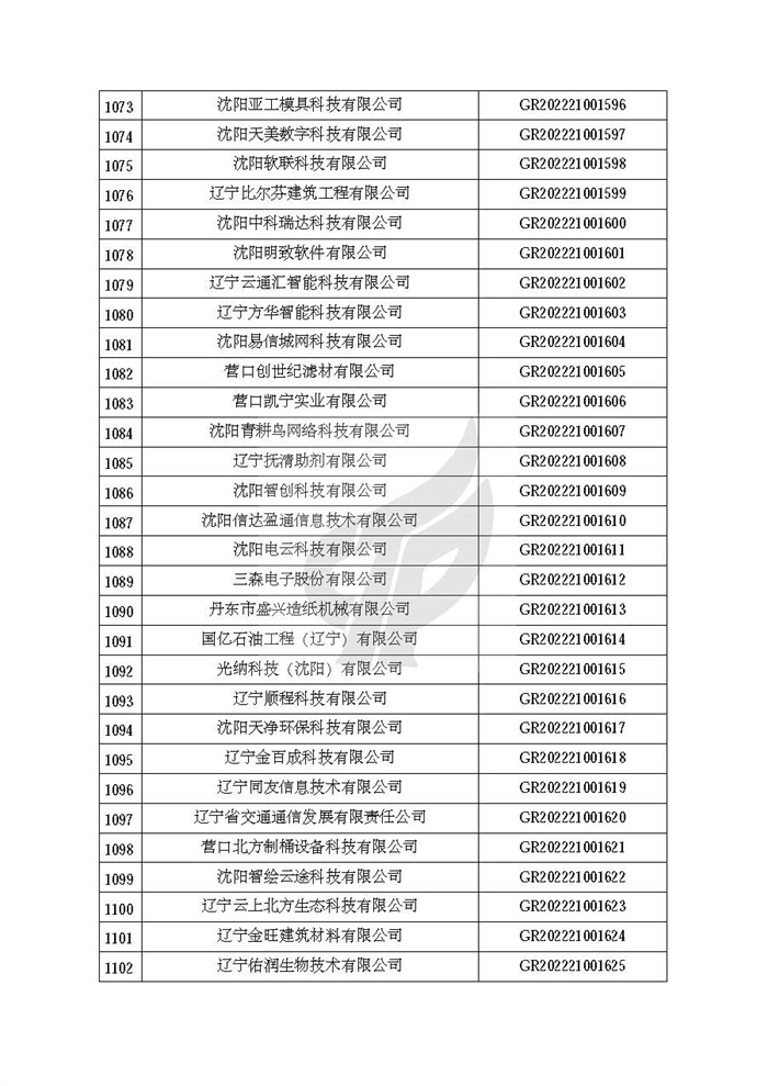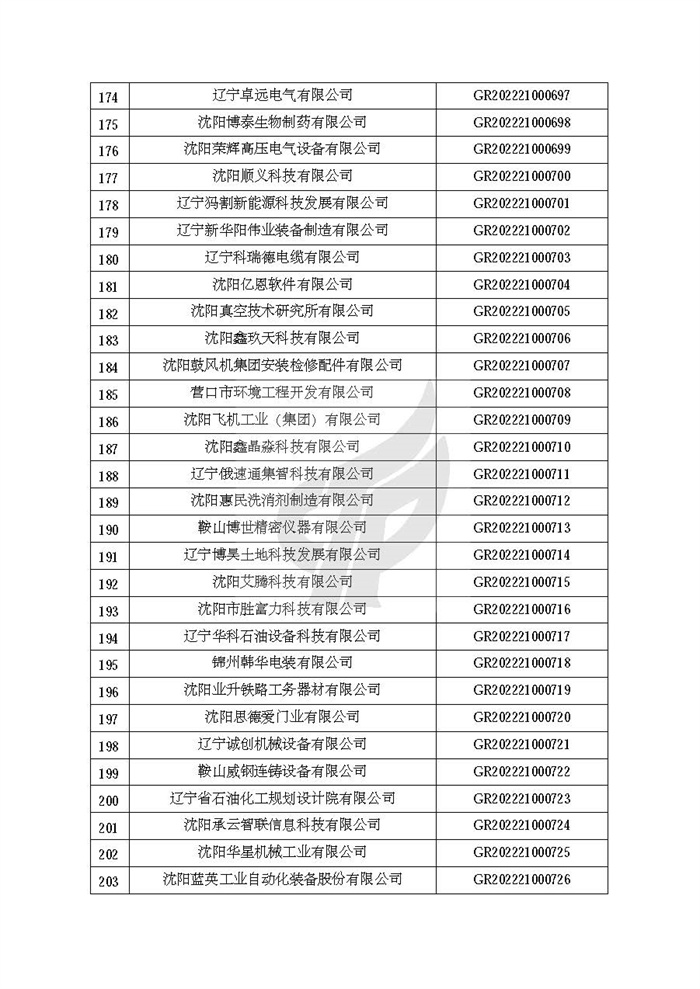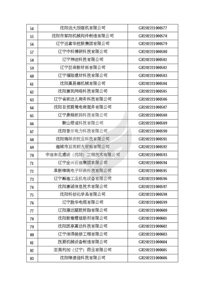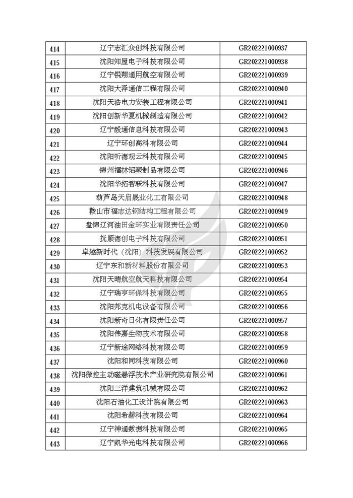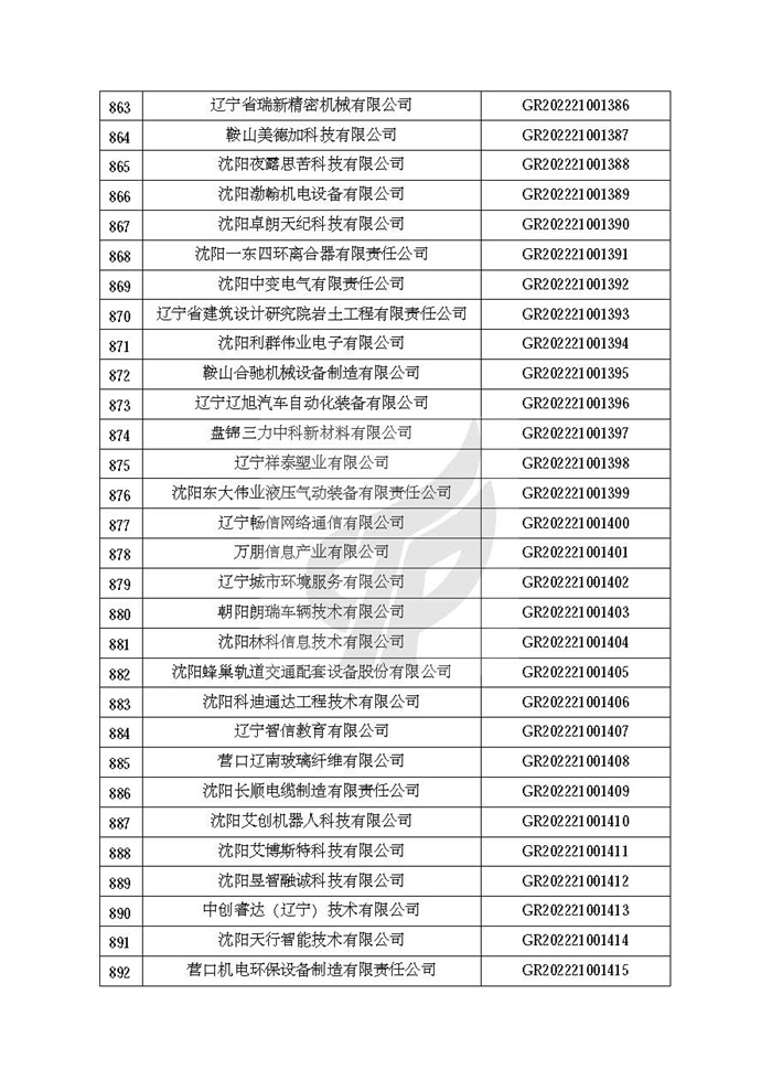 关于对辽宁省认定机构2022年认定的第二批高新技术企业进行备案的公告