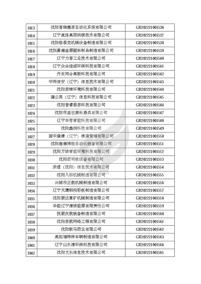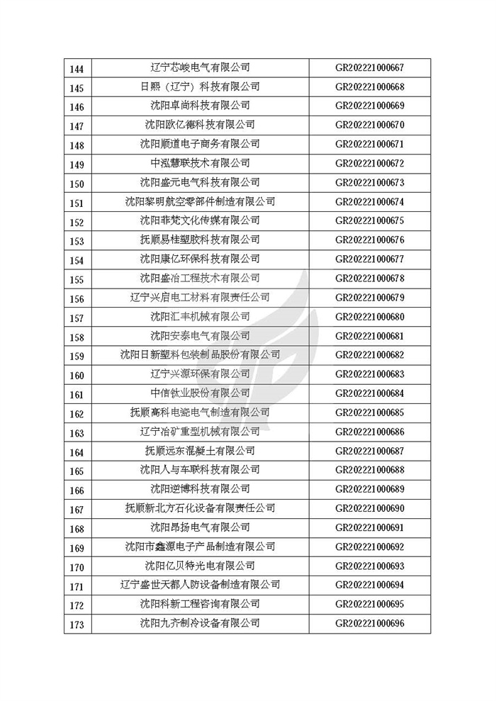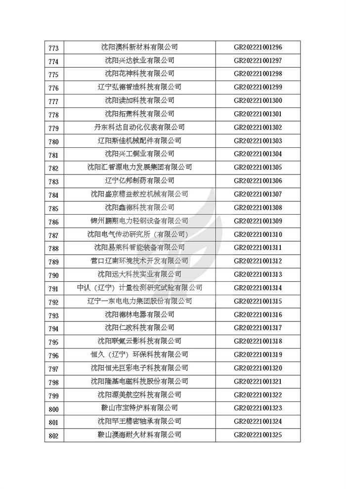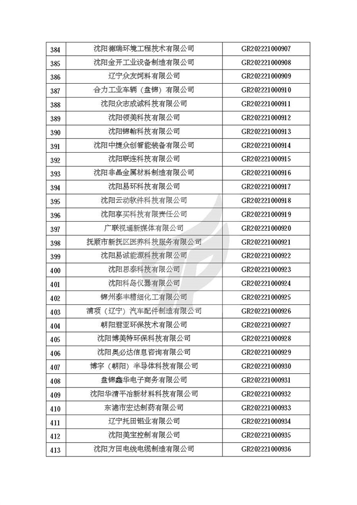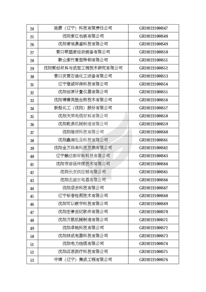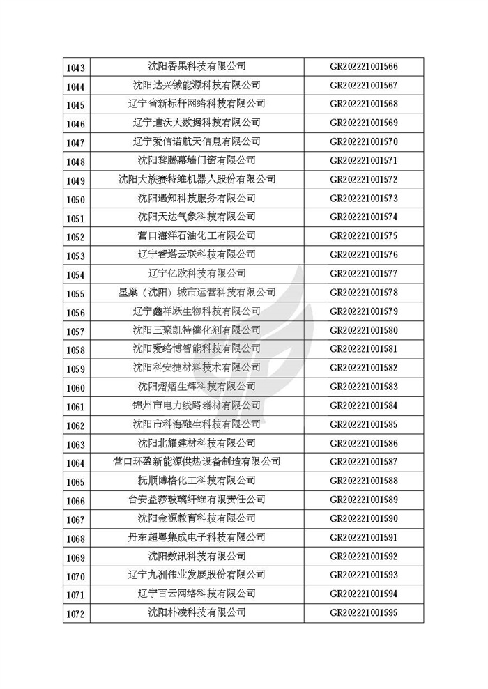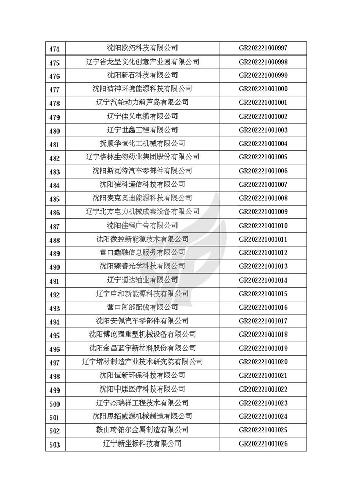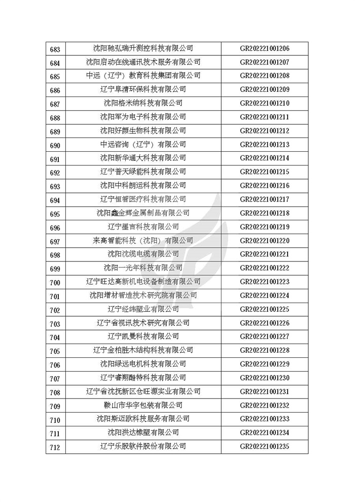 关于对辽宁省认定机构2022年认定的第二批高新技术企业进行备案的公告