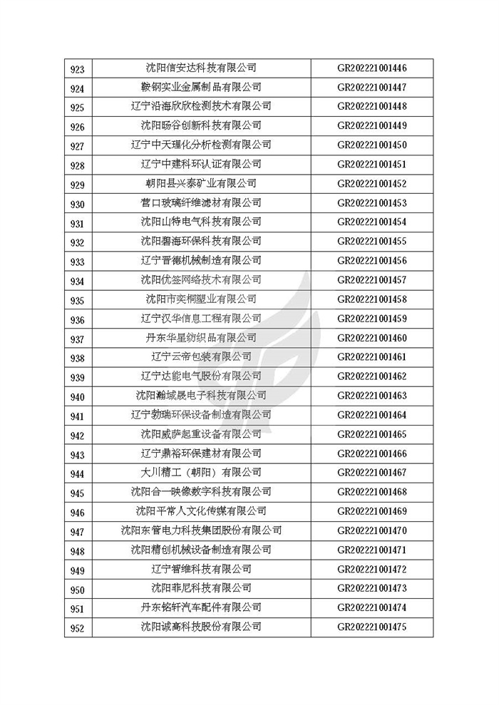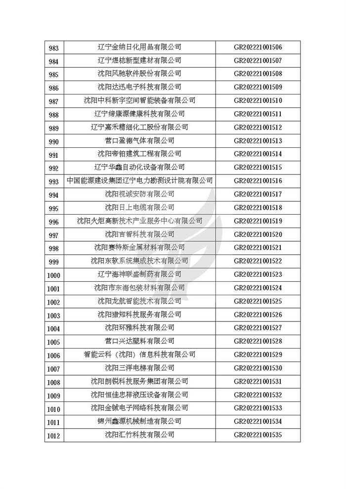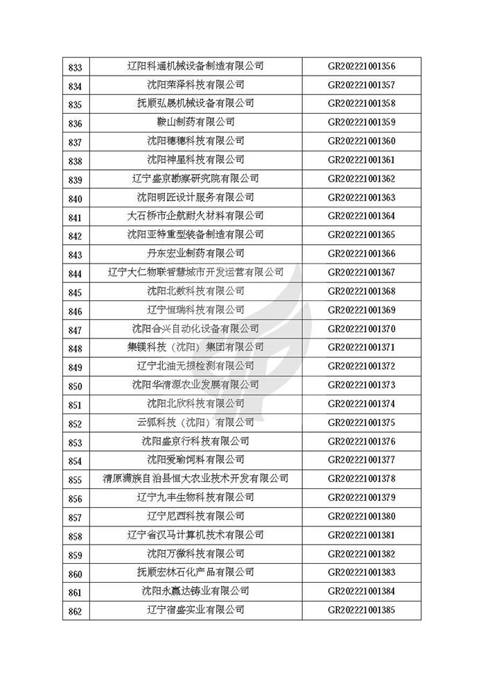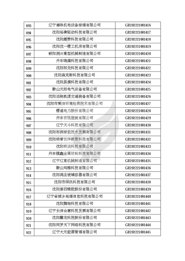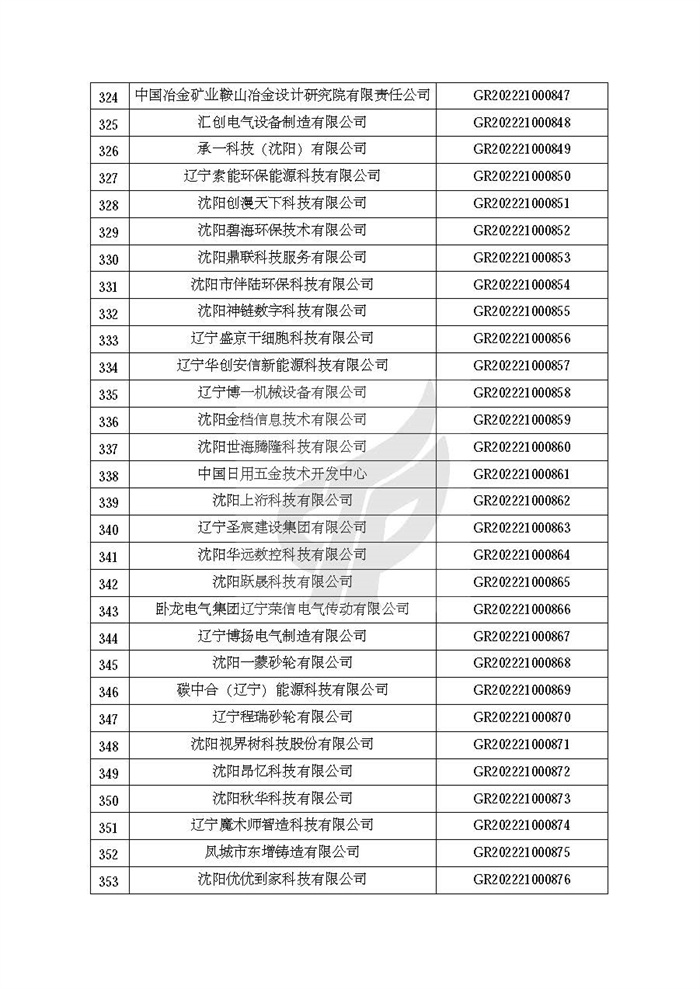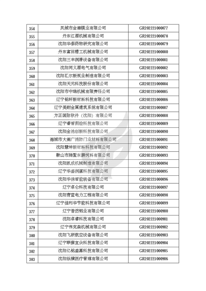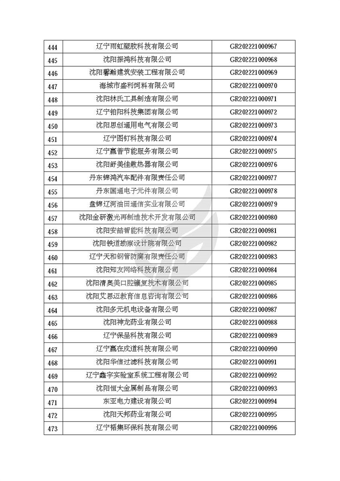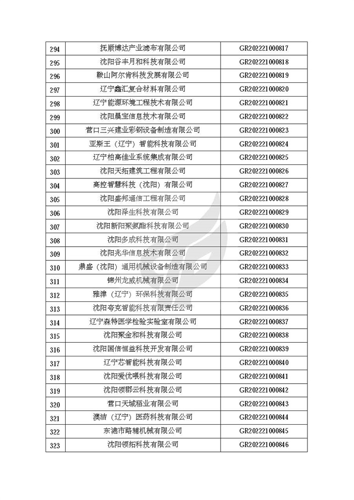 关于对辽宁省认定机构2022年认定的第二批高新技术企业进行备案的公告