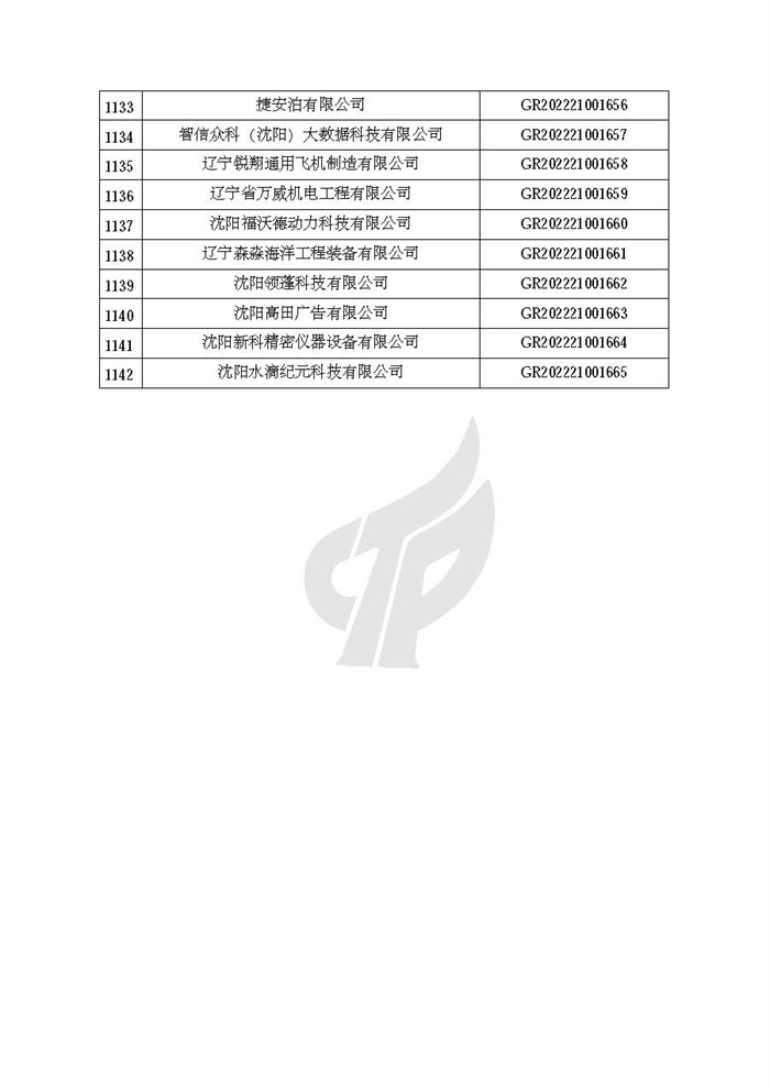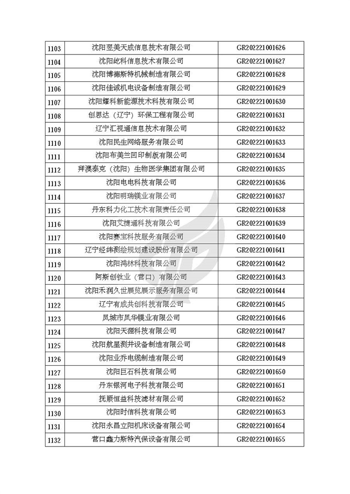根据《高新技术企业认定管理办法》(国科发火〔2016〕32号)和《高新技术企业认定管理工作指引》(国科发火〔2016〕195号)有关规定,现对辽宁省认定机构2022年认定的第二批1142家高新技术企业备案名单(详见附件)予以公告。