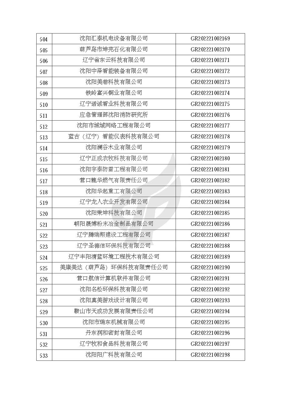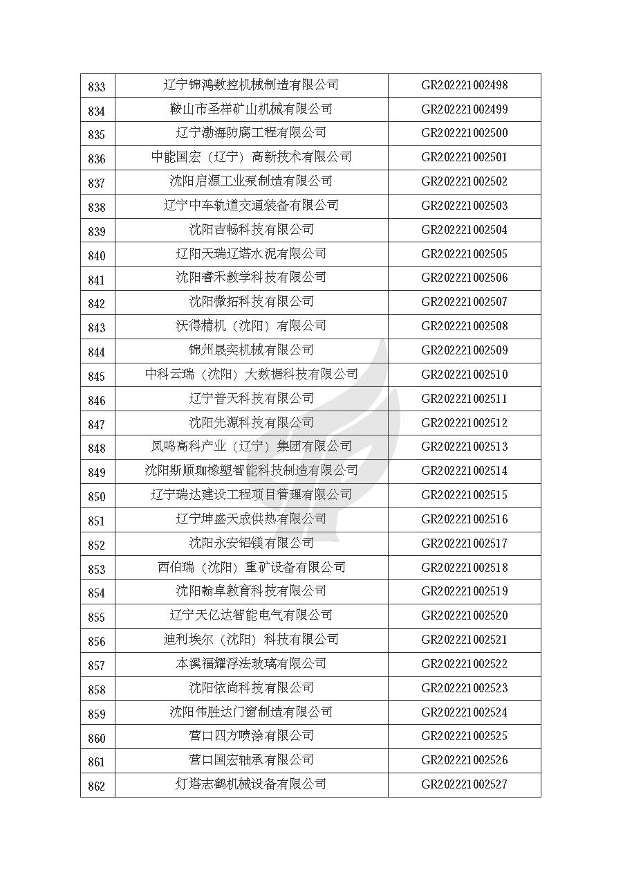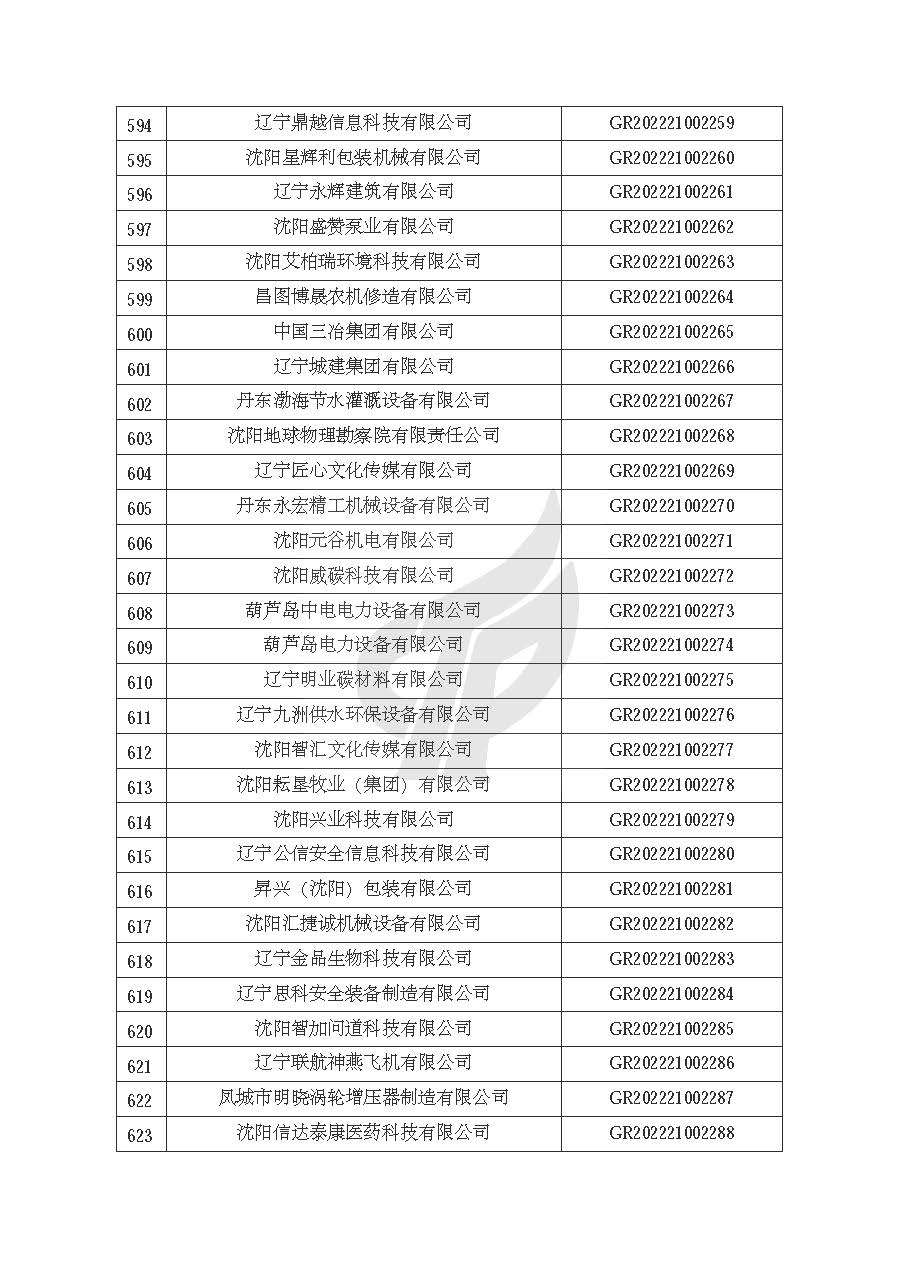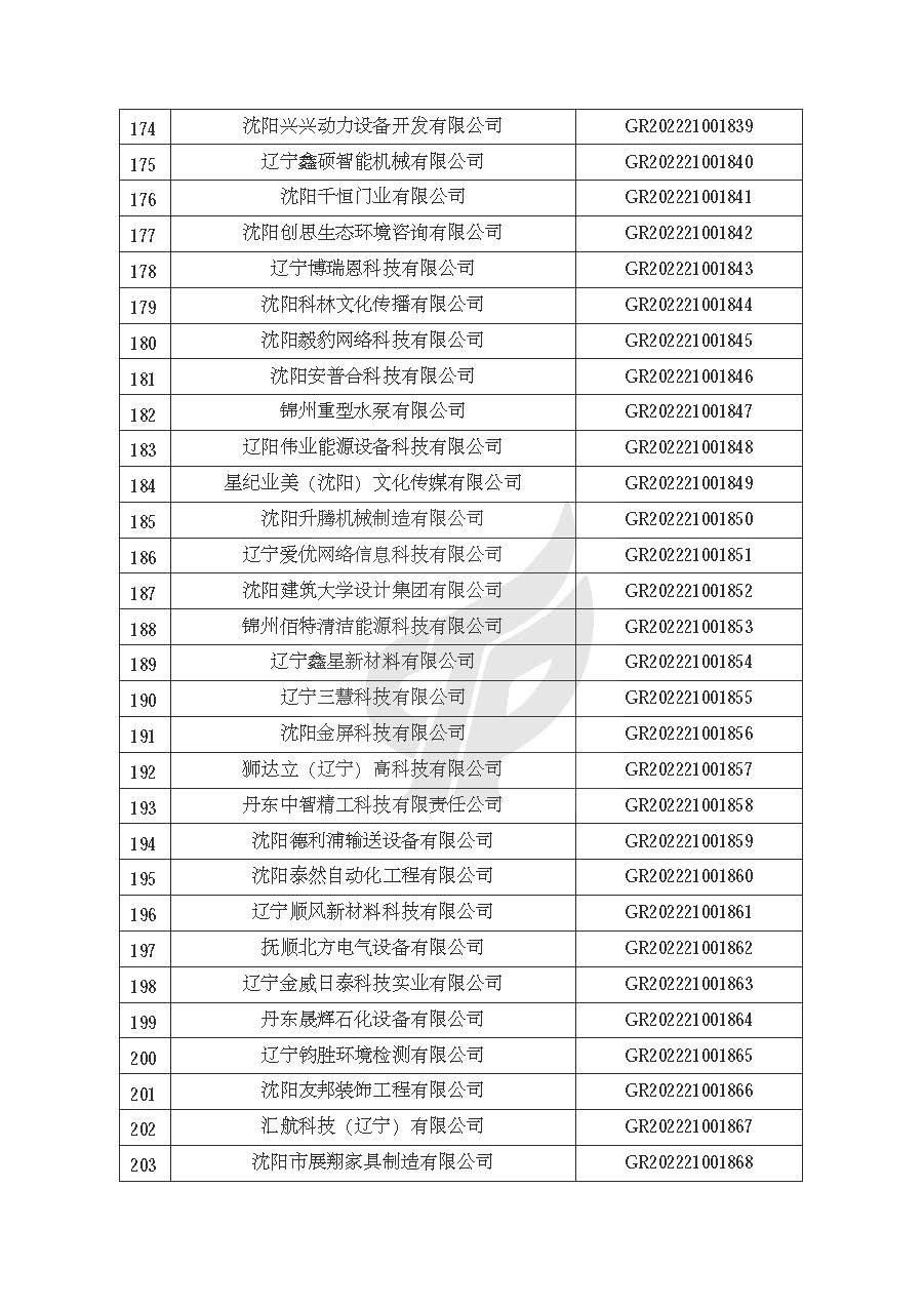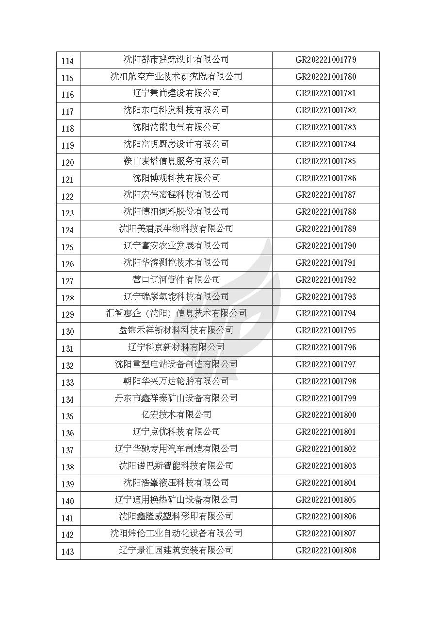 附件:辽宁省认定机构2022年认定的第三批高新技术企业备案名单