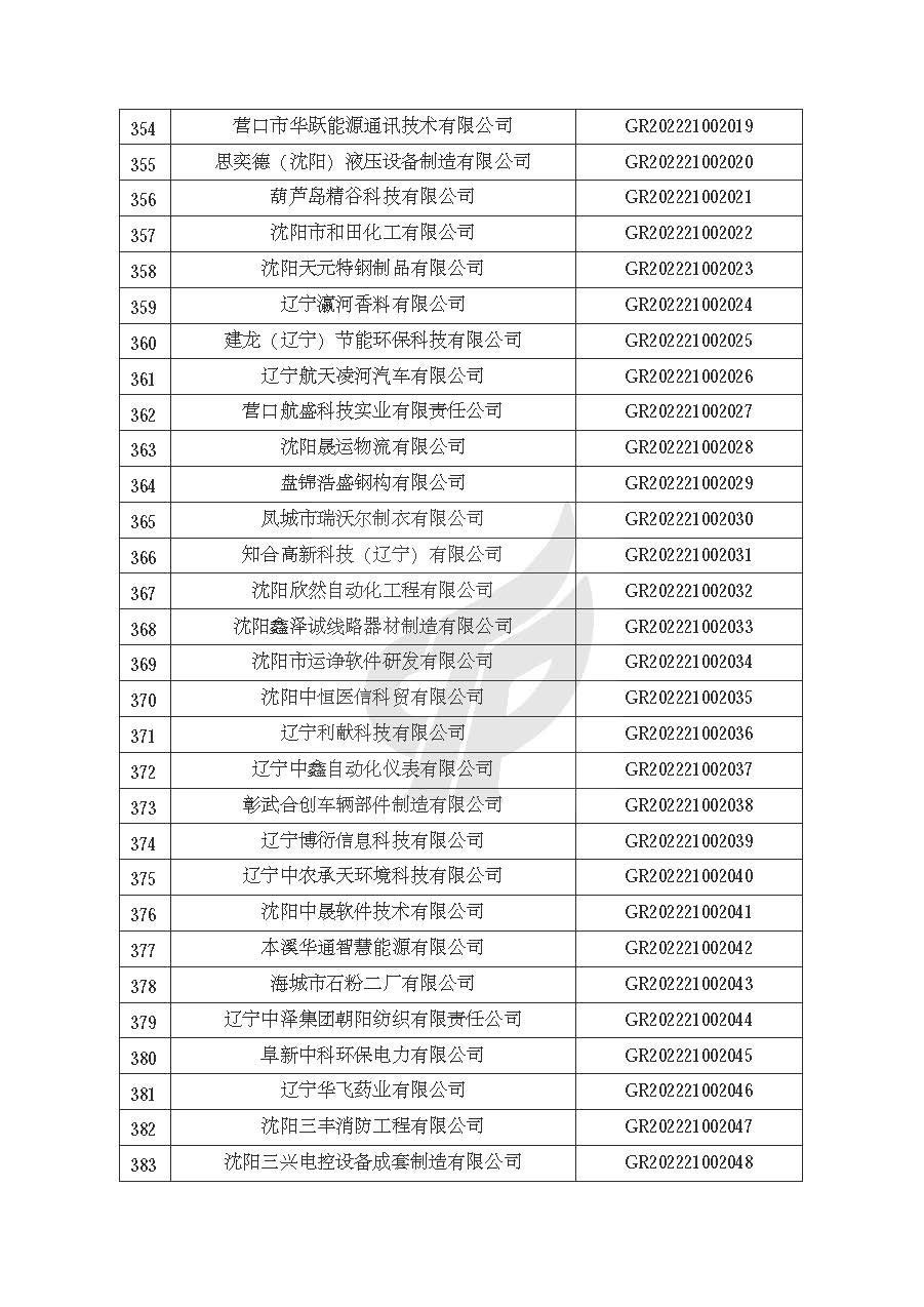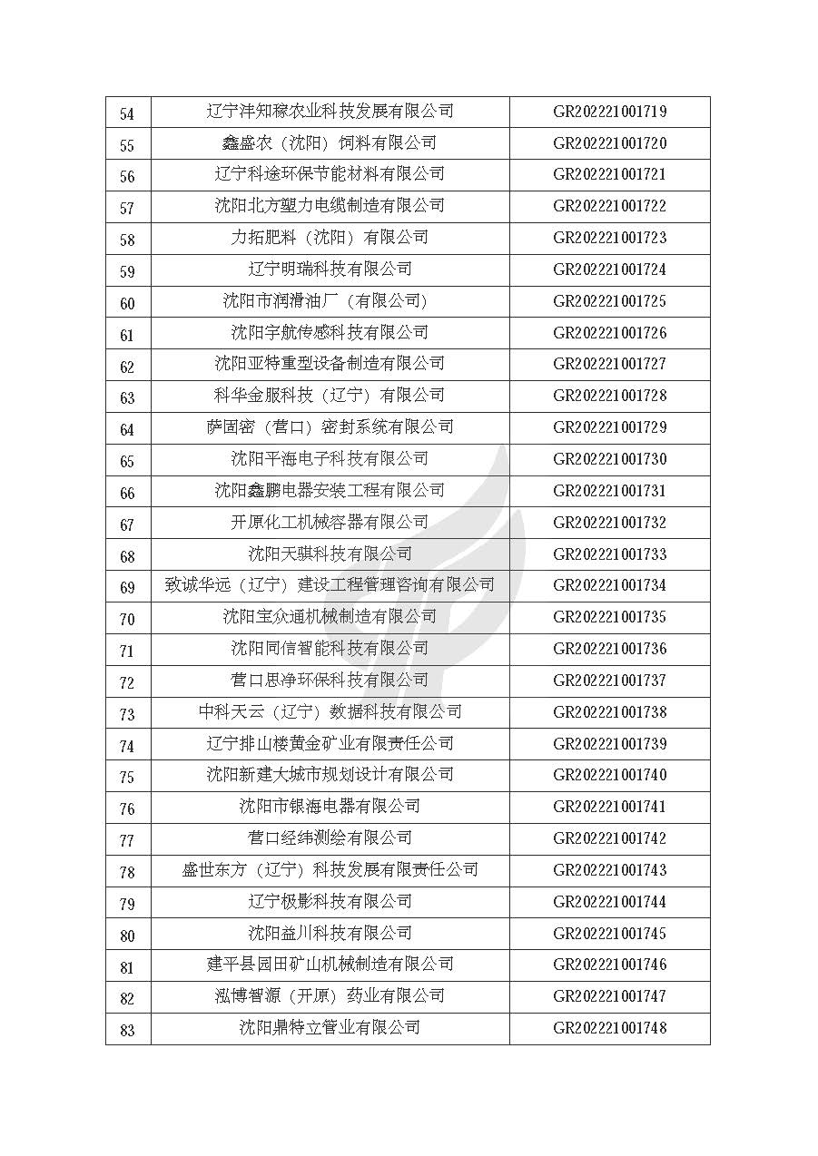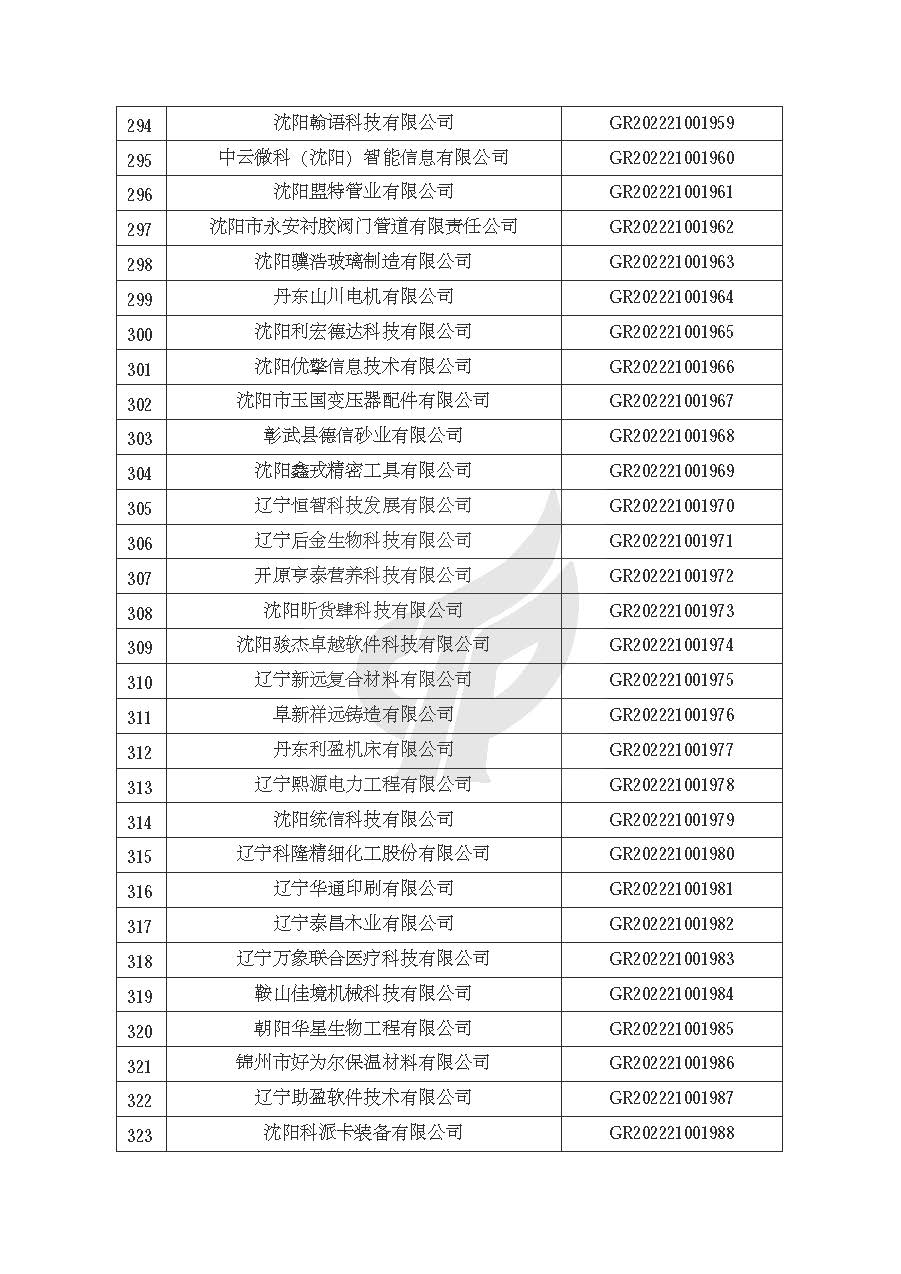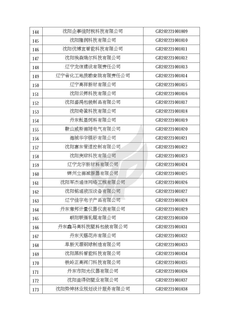 附件:辽宁省认定机构2022年认定的第三批高新技术企业备案名单