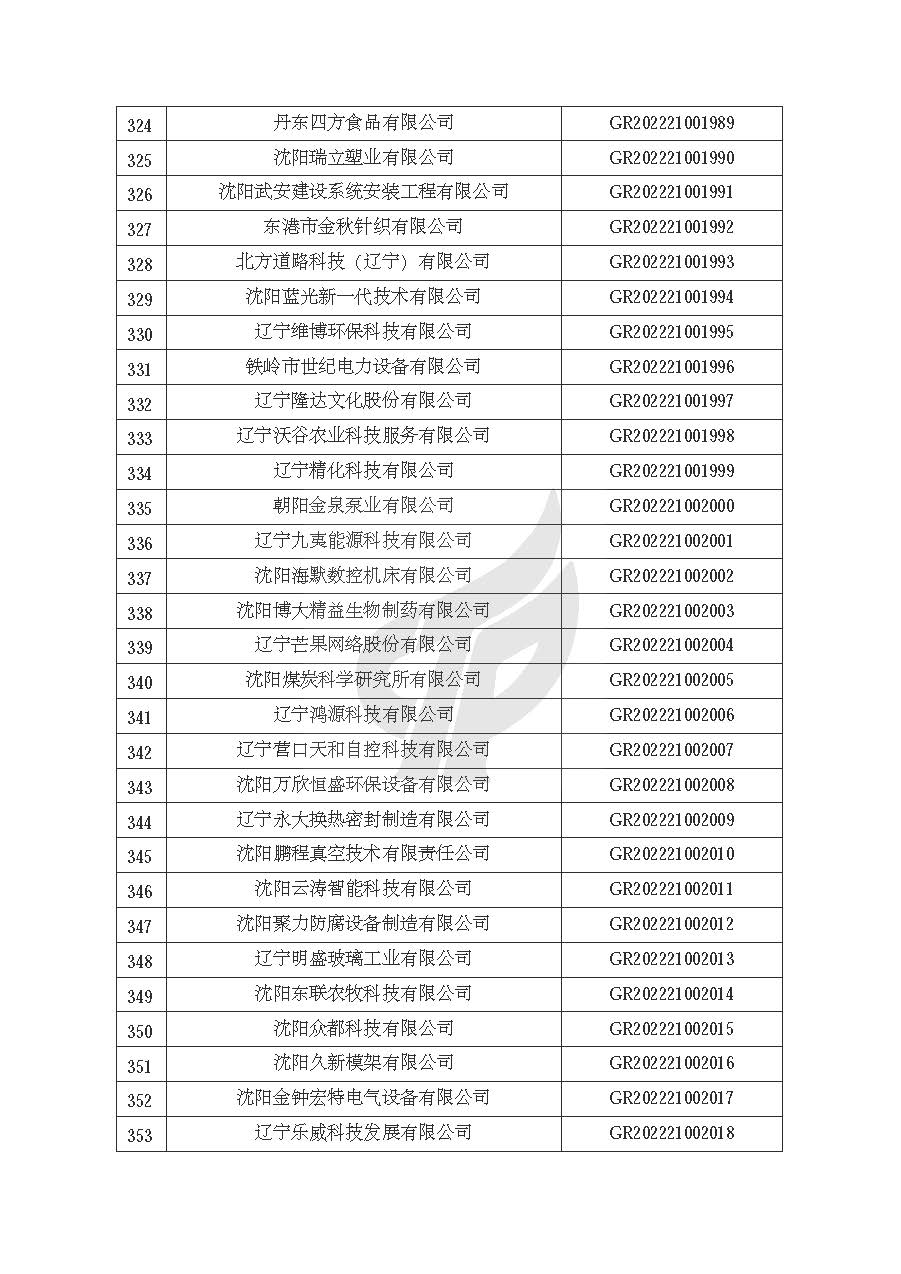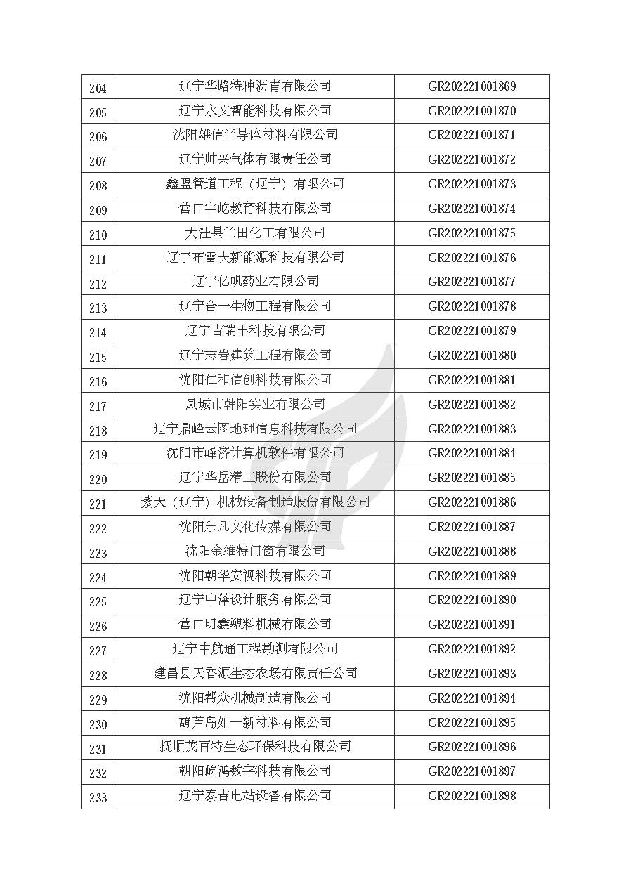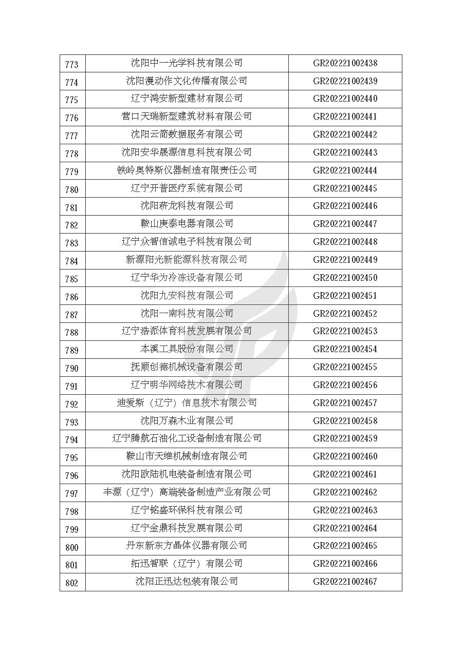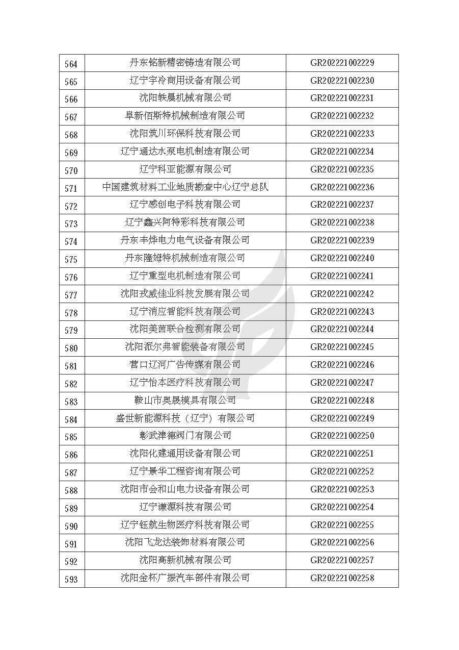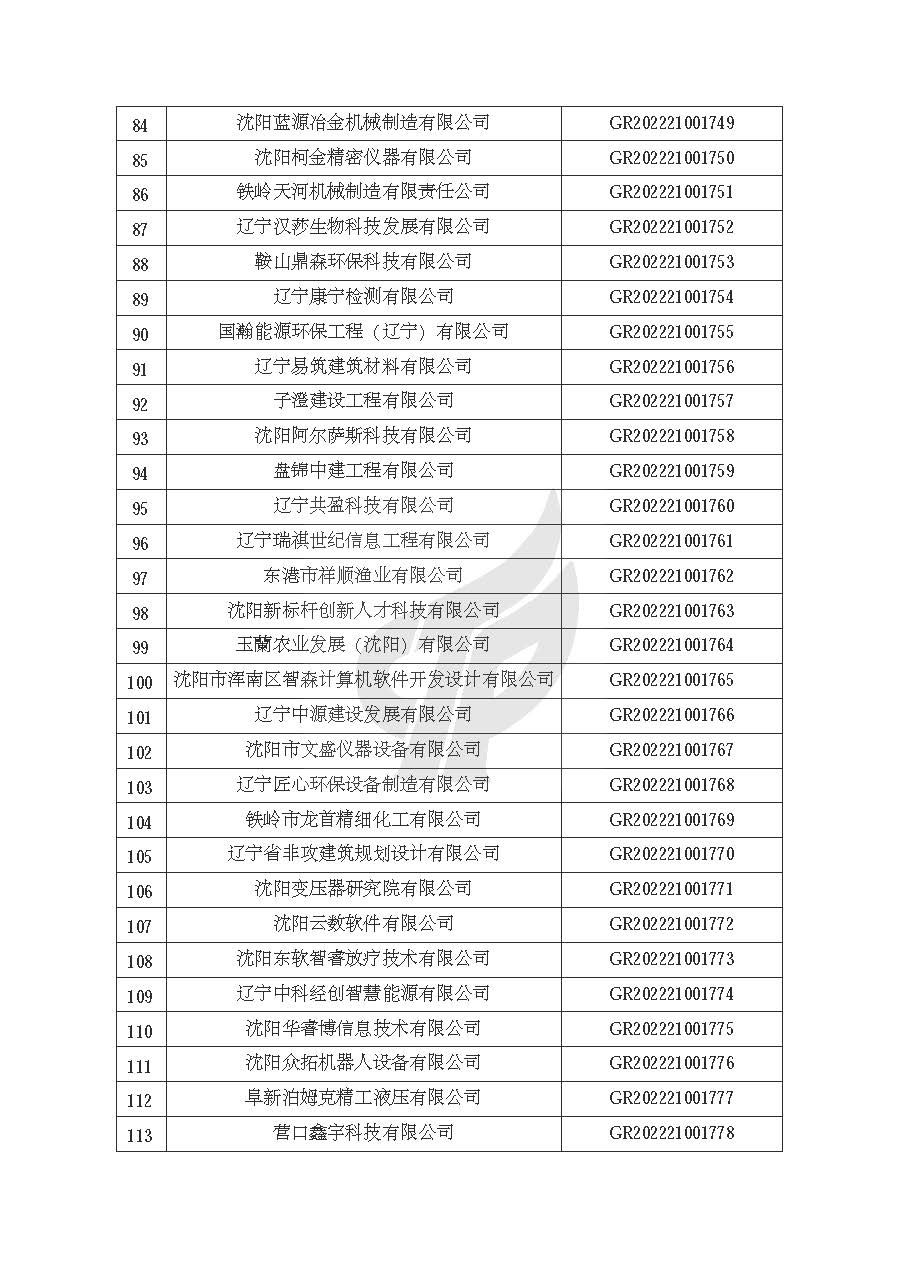 附件:辽宁省认定机构2022年认定的第三批高新技术企业备案名单