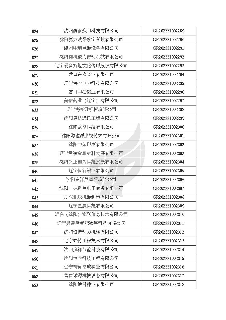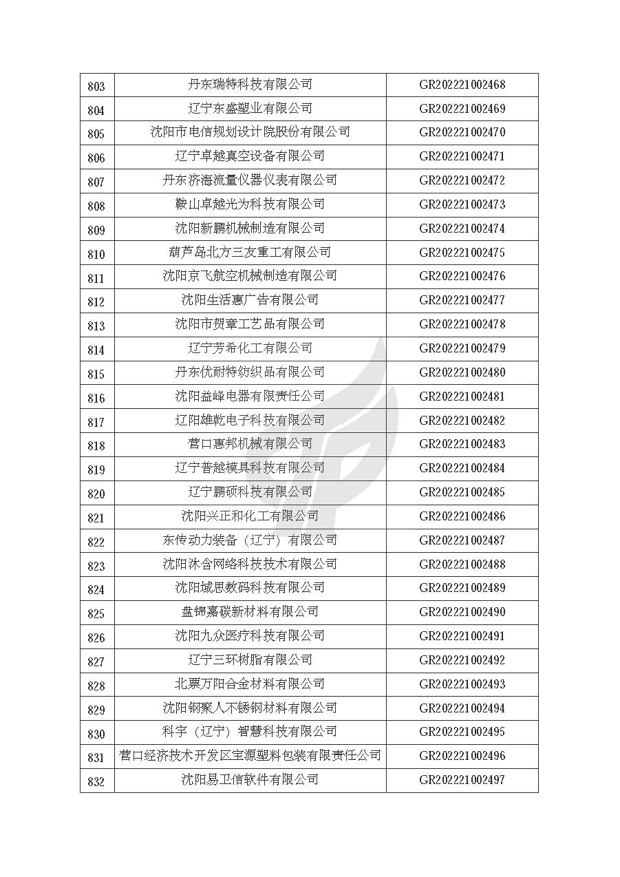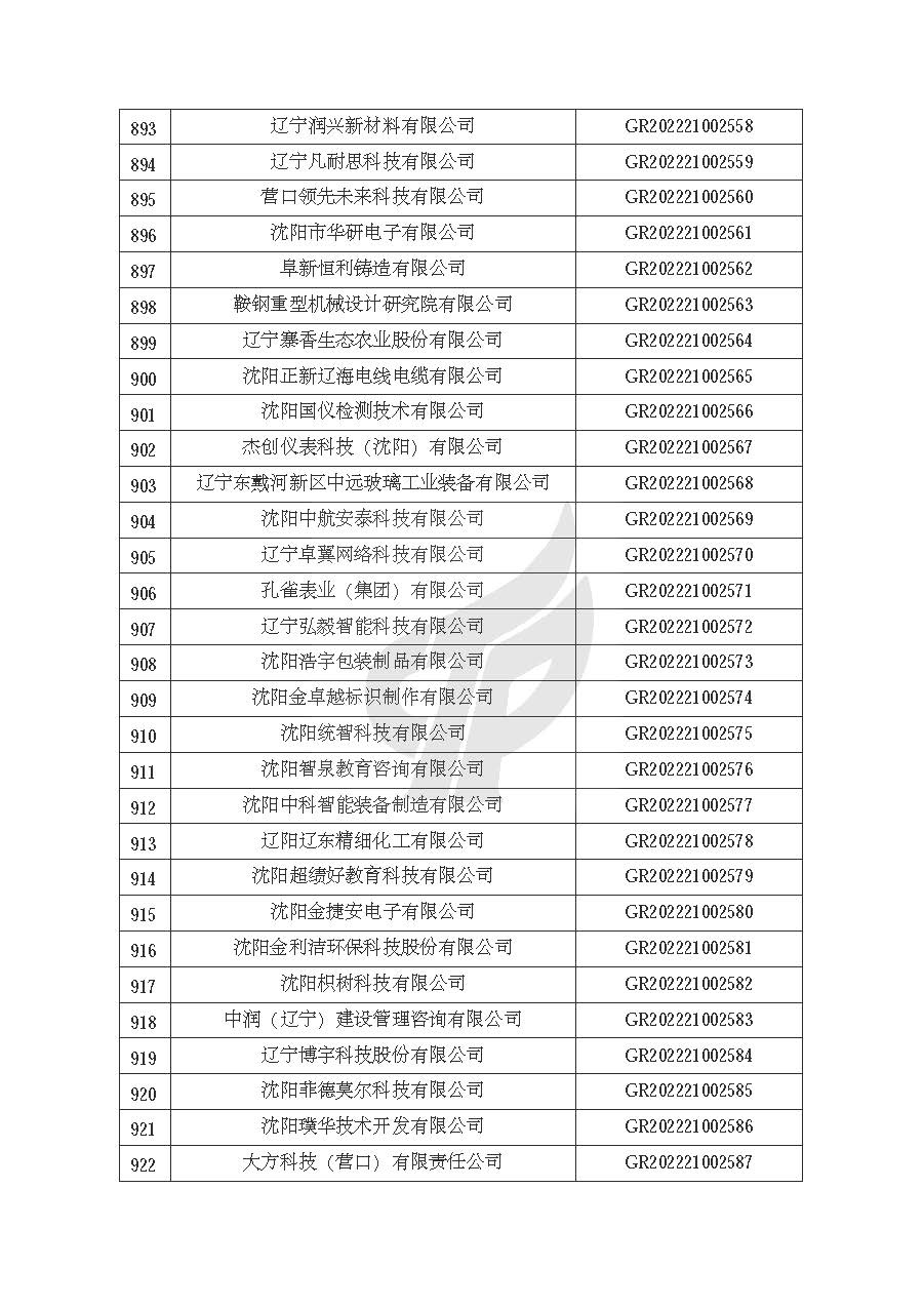 根据《高新技术企业认定管理办法》(国科发火〔2016〕32号)和《高新技术企业认定管理工作指引》(国科发火〔2016〕195号)有关规定,现对辽宁省认定机构2022年认定的第三批943家高新技术企业备案名单(详见附件)予以公告。