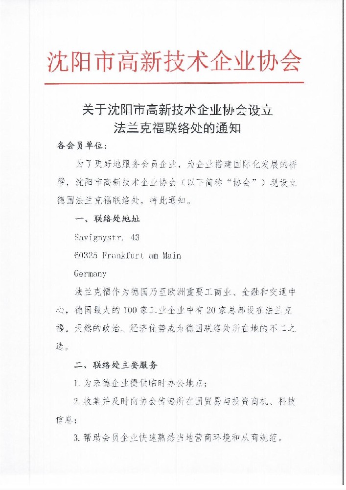 乐鱼(中国)设立法兰克福联络处